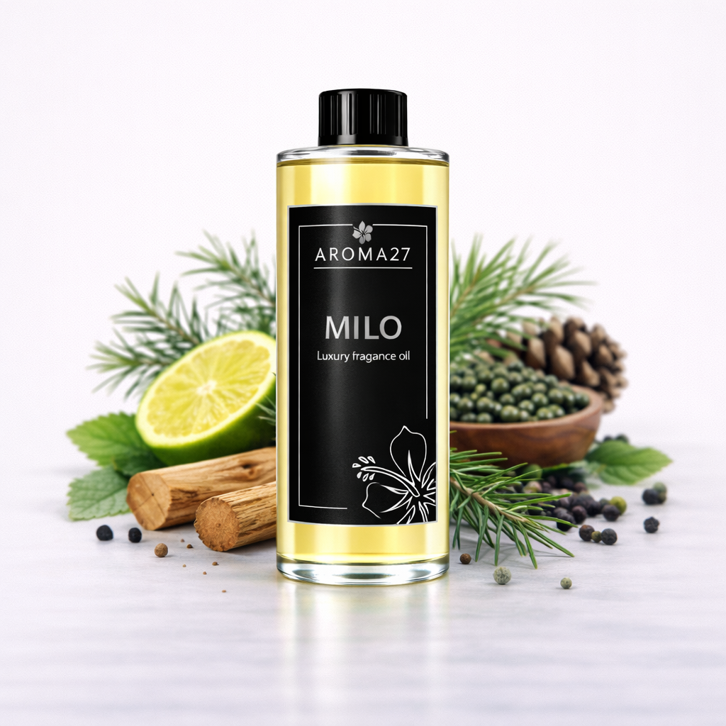 Milo de Aroma 27 transcends beyond being just a fragrance; it is an emblem of identity for spaces that value sophistication and want to offer a unique and memorable sensory experience to their visitors. Perfect both for personal use and to define the atmosphere of high-caliber spaces, Milo is a central piece in the olfactory narrative of modern perfumery.